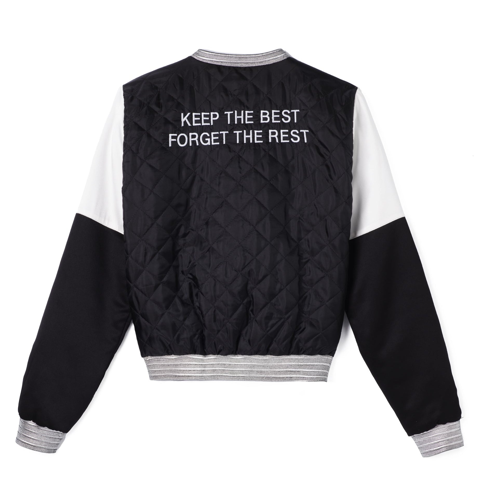 Au dos, la broderie “Keep the Best, Forget the Rest” nous invite à remercier nos ombres autant que nos lumières, et à arrêter de lutter entre elles.