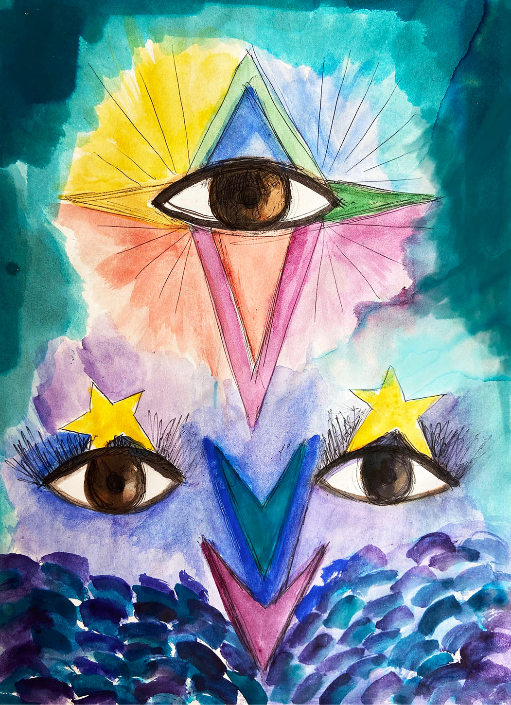 Cette création originale de Julia Colléaux s’inscrit dans la collection Divine Love. Grâce à la fluidité de l’aquarelle, la sensibilité du crayon et la richesse du collage, l’œuvre ouvre un espace poétique, symbolique et énergétique, en harmonie avec l’univers de l’oracle The Pleiades Oracle.